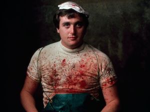 New starters from out of town would wait in the yard, standing around, as the abattoir workers streamed out of the buildings on the morning’s first whistle, all of them heading for either the lunchroom or the kiosk across the road. Men and women from the boning rooms with their white overalls and caps lightly covered with animal grease, hooded men from the freezer rooms muffled up in layers of rags and old sacking, slaughtermen with their bare forearms and faces crusted with heavy sprays of blood, local toughs wearing scabbards full of razor edged knives. Cookermen, boilerkeepers, yardmen, and everywhere amongst them the rust colour of blood and the smell of its corruption.