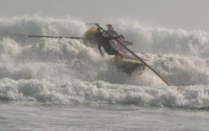 There are over 50 combatants in the water, including some pathetic ring-ins from Newport and Narrabeen and the R Millar surfboat sits like a predator three hundred yards to the east of the pack.