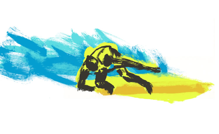 Although the image is indistinct and without detail there is a wealth of information available – the horizontal trailing arm counter-weighed by the dip of its hand, the slight hunch on the leading shoulder all allude to speed and projection, the head is well weighted and looking in the right direction. The subject could also be at the moment of decision; down the line? carve it around and whang off a big cutty? or drop down to the flat and crank up some more speed?