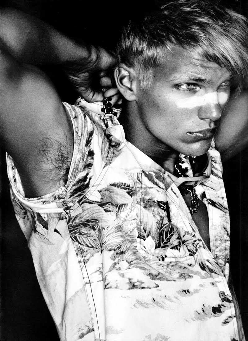 This non-conformist has the dead stare of a finalist psyching out his opponent at Banzai Pipeline, or the guy who declines a tow-in at maxed out Chopes. There’s a little Miki Dora here, a darker Dane Reynolds.  A raw but subdued sexuality that suggests an inner turmoil – there is a lot here that needs worrying about.