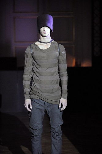 We think we can appeal to the zany fellow, the joker in the pack with this club look. Look at the contrast here, the mix of mild grey to army khaki stripe, the weapon’s strap accessory and the bucket on the head.