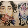 A perfect young man slides into a spare seat and connects his laptop and iphone and ipod and earphones - his girlfriend is looking at her palm, there must be a phone in there somewhere - they do not speak. Every now and then he tosses back his long hair and rakes his fingers through the curls, he has a stain on the back of his shirt.