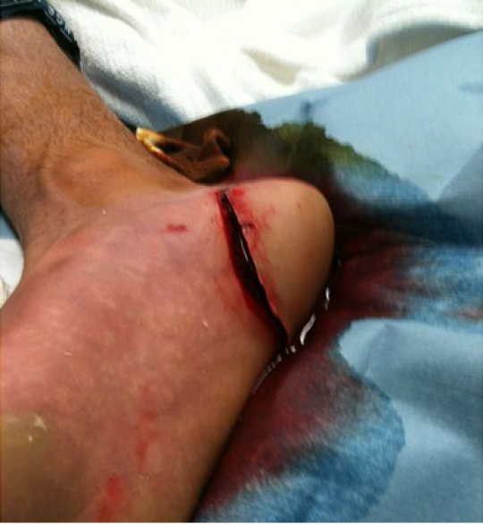 The same injury which caused the doctor to “lose count” of how many stitches were required to sew it up.