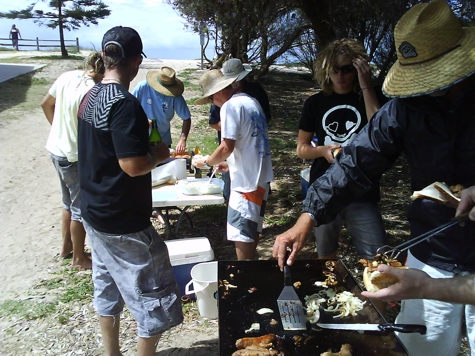 The only item here ^ that shows any link to the proper surfing standards we all strive to live by is the quality of the food they are preparing. Greasy meat and greasy onion slapped onto a stale bread roll, though even here we have a couple of unforgivable omissions – where is the tomato sauce, the meat pies, and bananas – surfers always eat bananas, and watermelons.