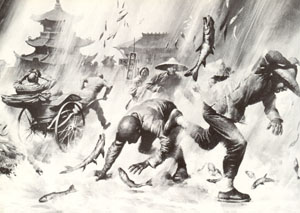 Same with the Singapore codstorm, and who’s to know if that chinese looking guy standing under the telegraph pole in Ballina, the one down the road from the Courthouse, isn’t a great grandson of Neville up there, the guy pulling the mogul through the fishfall. Tell me that couldn’t happen.