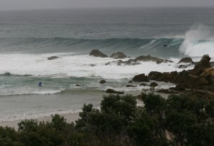 ‘ He goes out to the bombies around the Cape and links them all up on his …. craft,’ says Alg, ‘ it looks like a mat but the thing is only half full of air and can be used as a kind of bodysheath so GG can plane it out and accelerate when the wave starts to get steep and throw, and then he can shift its function to something similar to a hull-cut and carry on through the fat bits – still at full speed and no slap-bumps because he’s changed the in-water configuration of the thing somehow – until the next shallow section shows its boils. ‘