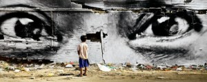 The girl sits at the back of the group sheltering under the overpass, she is leaning up against a low wall that borders a planting of iris and spider-lily, they are in flower, and she stares defiantly at the man who passes by and finds her eyes.