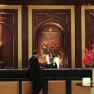 Two girls painted in a black fabric brassed on through, tall with satin bulges.