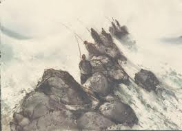 This is what a man grabs when the wave is on him and he can’t get back in time, once you’re in the water on a big day down here you are in for a terrible scraping. It’s been a merciless end for some. And you know they are in trouble when they toss their rods away and grab the peg with both arms. Watching isn’t easy.