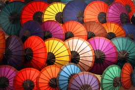 I hold out my (furled) umbrella for his examination, it’s a multi-coloured golfer’s extravaganza. Greg Norman quality.