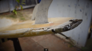 Number 15 – an eight foot six triple stringer classic by Mick Dooley. I had to tell it to him gently. Mick, I said, it’s got too much rocker. So there was only one thing to do.