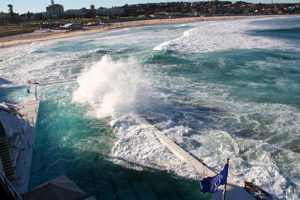 This boy took a break at the oceanside end of the pool one day, his arms resting on the seawall, heaving with breath, blowing hard. Dodging the cascades of water thrown up by waves hitting the edge.