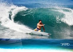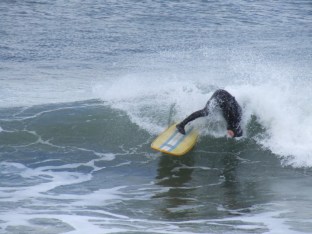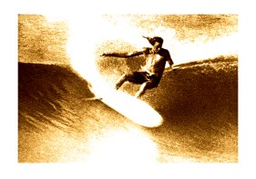 Potters’s craven acceptance of the temptation to whang off a slice of wave-top for the shot has completely destroyed his natural equilibrium and the result, although an attractive pic for the kiddie’s bedroom wall, is in reality a lesson of the power of vanity over ability.