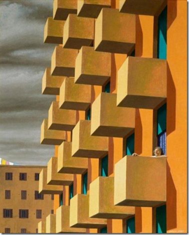 Smart adopted this aesthetic in part because of interest in the work of Edward Hopper and Pierro della Francesca, creating an eerily surreal quality in his paintings of industrial spaces and urban places.