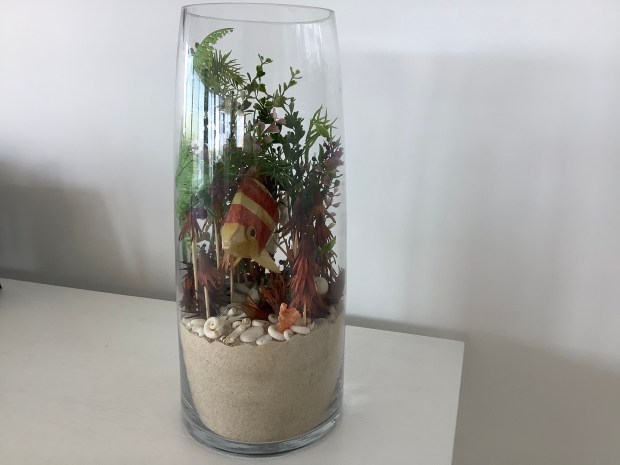 Coral fish from Indo, spirula from Palm Beach, mangrove pods from the Richmond River .. sand from Lighthouse Beach.