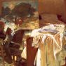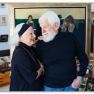 Pamela has painted a reasonably heavy woman wearing a skivvy and string bikini bottom riding a yellow board on a blue wave. The woman is sans brassiere, unattractively so. She is also wearing lipstick, eye-liner and earrings. She is surfing. Somebody needs help here.